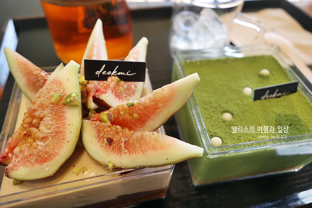 덕미 카페에서는 홀케이크부터 조각케익 포장,주문까지 가능하다. 정성스레 만들었다는 케익크들을 보고 있노라면 흔한 재료나 흔한 이름은 아님은 확실하다. 예를 들어 얼그레이 무화과 티라미슈라니. 이건 맛이 없을 수 없는 조합이지만 어디에서나 쉽게 먹을 수 있는 디저트는 아니다. 그래서 덕미 카페는 특별하고 나는 이곳에 꼭 와보고 싶었다.