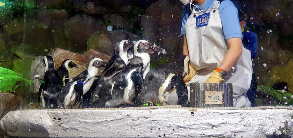 특히 자카스 펭귄은 밥을 먹을 때, 한마리씩 저울에 올라간다. 밥도 먹고 체중도 검사하면서 자카스 펭귄의 건강을 살필 수 있는데, 이 밥을 먹기 위해서 옹기종기 모여있는 자카스 펭귄이 어찌나 귀여운지, 다들 얼굴에 함박웃음이다. 한마리라도 더 얻어먹기 위해서 다닥다닥 붙어있는 펭귄들의 모습은 어디에서 쉽게 보기 어려운 광경이다.