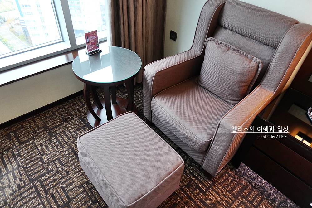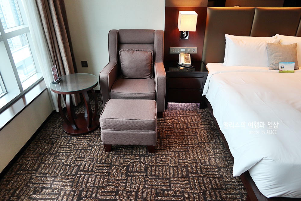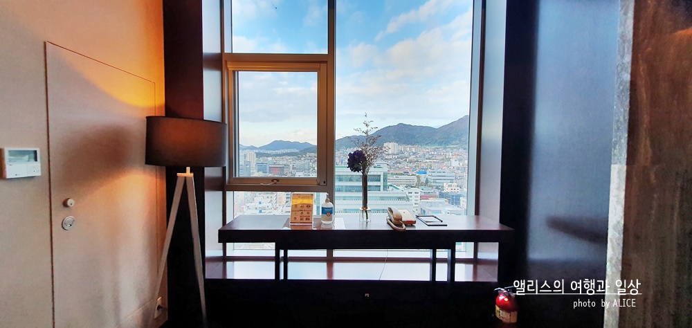 배정받은 객실은 14층. 높아서 그런지, 그리고 가을이라 날씨가 청명했던 날, 창가를 바라보면 어디서든 시티뷰이어도 푸른 하늘에 높은 산까지 배경이 되어주는 점은 가을을 즐기기에 완벽했다.