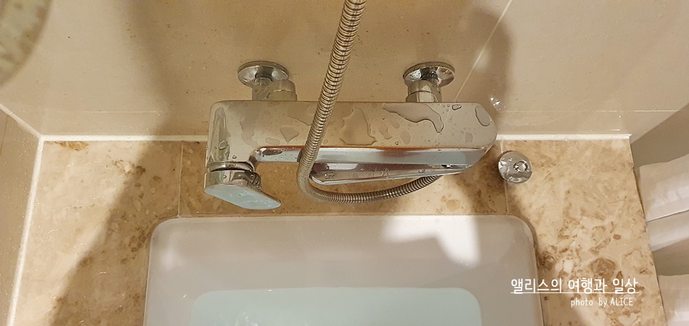 욕조에 있는 수전 사용도 무척 편리했다. 보통 처음 사용할 때는 어디서 물이 나올지 확인을 해야하고 그거 잘못하면 옷입고 샤워수전 건들였다가 샤워헤드에 물이 나와서 젖기도 한다. 몇번 그런 경험(?)을 하다보면 방어태세로 샤워헤드를 아래로 내려놓고 수전을 건드는데, 이 욕조에 있는 수전은 사용방법이 처음 보는 사람도 헷갈리지 않은 단순함이었다.