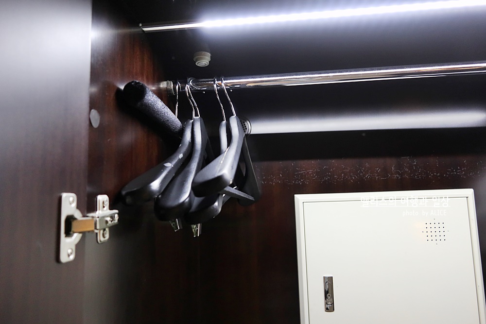전반적으로 옷장이 넓고 수납공간이 정말 넉넉해서 워케이션으로 장기투숙하거나 비즈니스차 방문하는 이들에게도, 김해 여행을 온 이들에게도 짐 걱정없이 지낼 수 있다.