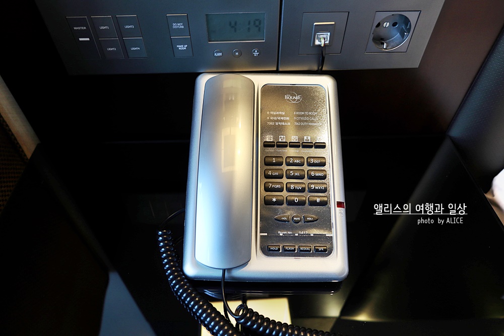 마스터 조명 역시 침대 옆에 있다. 전화기도 그 근처에 있음.