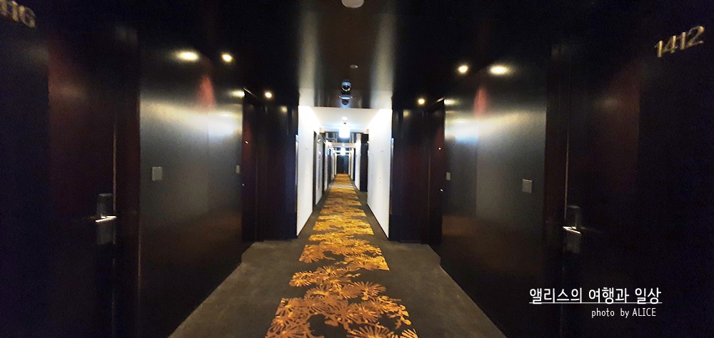 객실로 가는 길에 보이던 바닥의 카페트. 화려한 문양이 마치 가야시대를 떠올리게 하기에 충분했다.