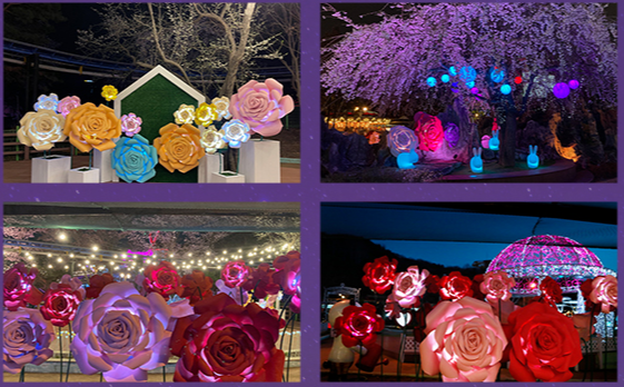 서울랜드 로맨틱가든은 조명과 오브제들을 더해졌다. 특히 수백송이의 거대한 장미꽃 오브제와 웨딩 가제보로 웨딩테마를 더해 연인들을 위한 로맨틱 스팟으로 변신완료! 대형 장미꽃 오브제는 핑크와 퍼플, 오렌지와 엘로우 등 화려한 색감에 LED 조명으로 빛을 더해 신비로움이 더해져서 더욱 매력적이라고! 여기에 웨딩 가제보는 화이트 베일과 화려한 장미로 둘러쌓여 준비된 의자에 앉으면 세상에서 가장 아름다운 연인이 된 듯한 기분을 느낄 수 있다.