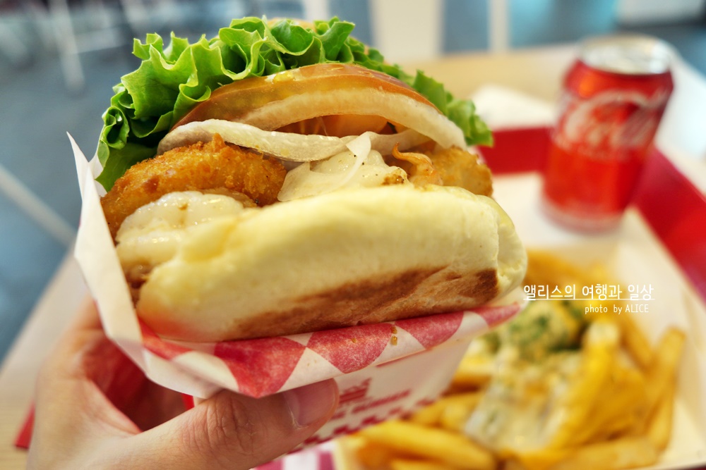 빵도 조금 다른 듯 했다. 보통 햄버거 빵은 적당히 스팀을 입혀서 나오는 빵이긴 한데, 왓더버거는 기존에 햄버거 빵보다는 조금 더 쫄깃하고 촉촉한 것이 먹는 맛이 좋았다. 이게 빵도 일반 버거와는 다른 느낌이 확실했다. 여기에 채소와 함께 들어있는 새우링 튀김까지. 왜 새우버거가 인기있는지 한 입만 먹어도 알 것 같은 기분.