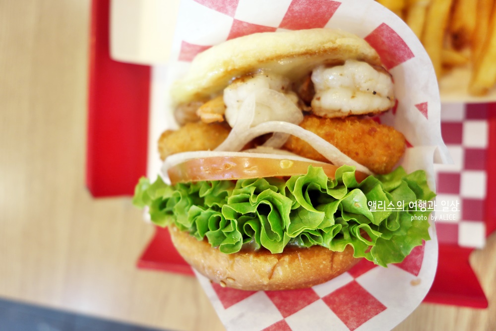 사실 언뜻 봐서는 보이는 부분에만 새우가 있는 것은 아닐까 싶지만, 사실 통통한 통새우가 내 눈에 보이지 않는 곳까지 들어있었다. 햄버거를 반이상 먹어도 계속해서 통새우가 입안에 잡히는 것을 보이 햄버거 전체 내에 새우가 들어있는 것이 아닌가. 마음에 들어 아주!!