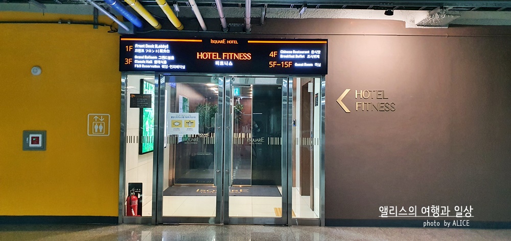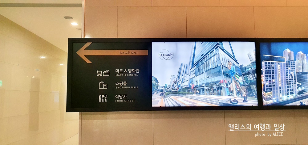 호텔 2층으로 이동하면 이렇게 표시된 표지판이 있다. 이곳 화살표대로 이동하면 바로 아이스퀘어 몰로 연결된다. 짧은 브릿지가 있어서 아이스퀘어몰로 쉽게 이동이 가능하니, 굳이 호텔 로비에서 정문으로 나와 돌아돌아 아이스퀘어 몰로 갈 필요가 없다.