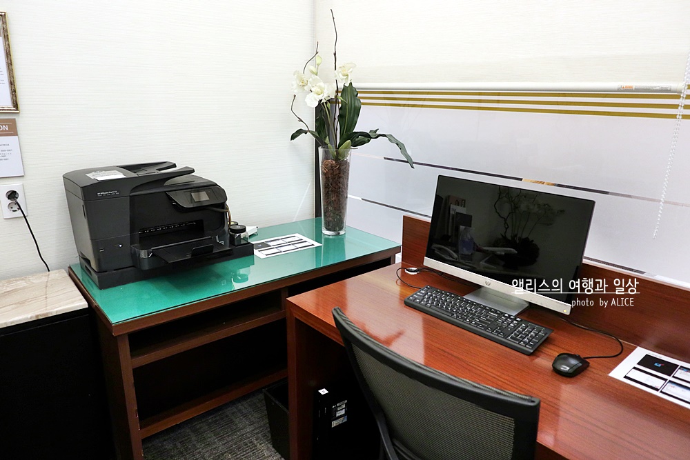 투숙객이라면 누구나 24시간 이용가능한 비즈니스 센터가 있다. 급하게 업무를 처리해야 하거나, 필요한 복사나 스캔등도 이곳에서 가능하다. 본관 1층에서 프론트를 정면으로 바라봤을 때 왼쪽으로 가면 비즈니스 센터를 만날 수 있다. 컴퓨터 3개에 복합기가 있으니 왠만한 작업 처리는 가능할 듯. 노트북이 필요하다면 프론트에 문의해서 유료로 렌탈도 가능하니 참고하시길.
