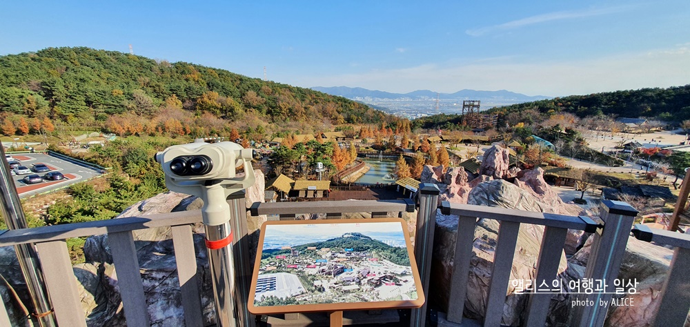 올라가는 중에도 은근히 진짜 광산의 느낌을 그대로 잘 표현했구나 싶을정도로 철광산은 웅장했다. 계속해서 걸어올라가니 익사이팅 싸이클 탑승장소가 보였다. 이곳에서 끝이 아니라 이곳에서 더 올라가야 했다. 그렇게 끝까지 전망대까지 올라가니 탁 트인 전경이 눈에 들어왔다. 날 좋은 가을에, 가을 옷을 잘 차려입은 자연속에서 화려한 가야테마파크가 한 눈에 보는 전망대에 오르길 잘했다는 생각이 들었다. 저 멀리 볼 수 있는 망원경도 무료로 사용할 수 있으니 참고하시길!