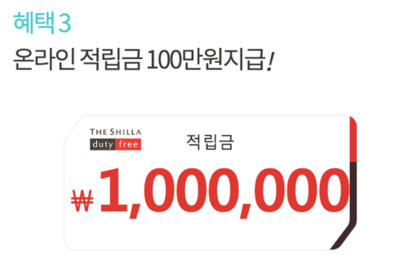 3. 신라면세점 온라인 적립금 1,000,000원 지급