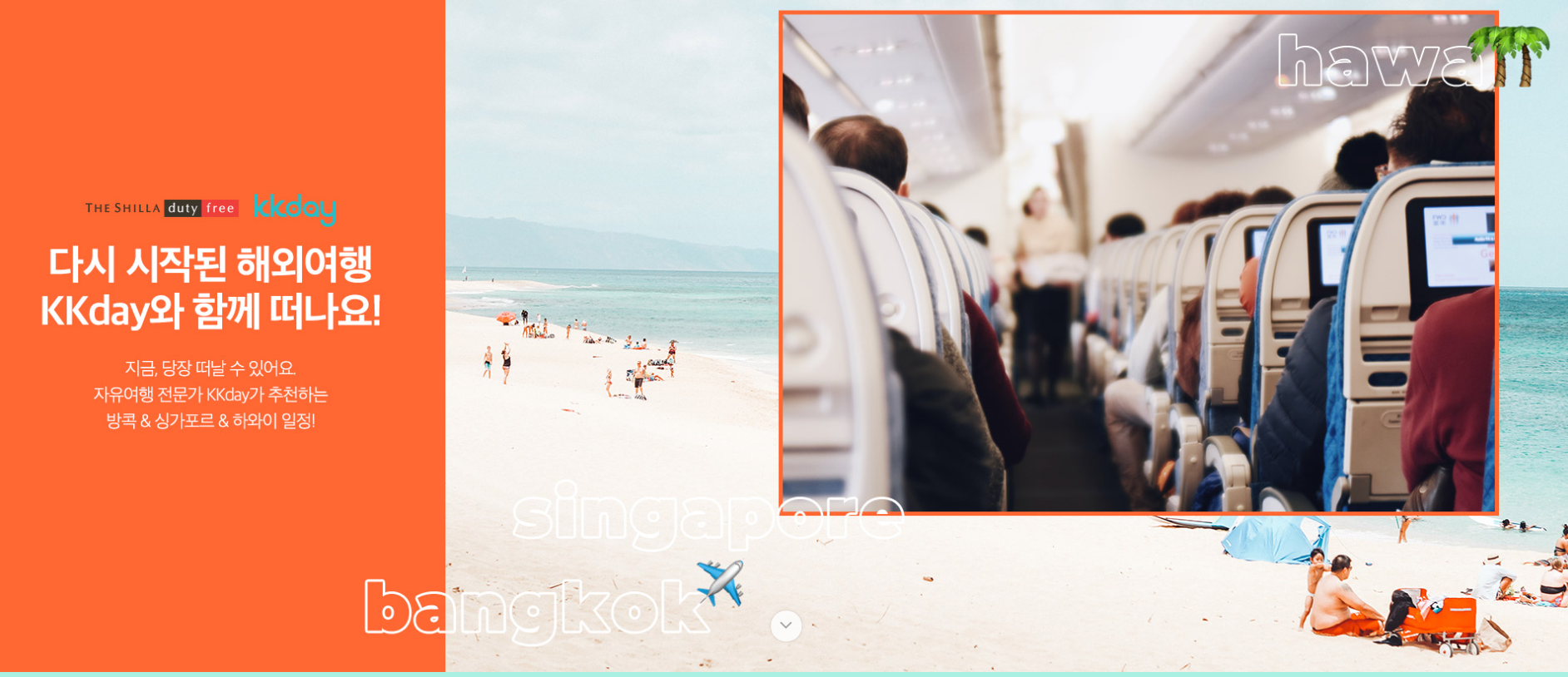 신라면세점 프로모션 페이지에서 kkday의 태국, 싱가포르, 하와이 여행 상품 구매시 신라면세점에서 이용가능한 추가혜택이 더해진다!!