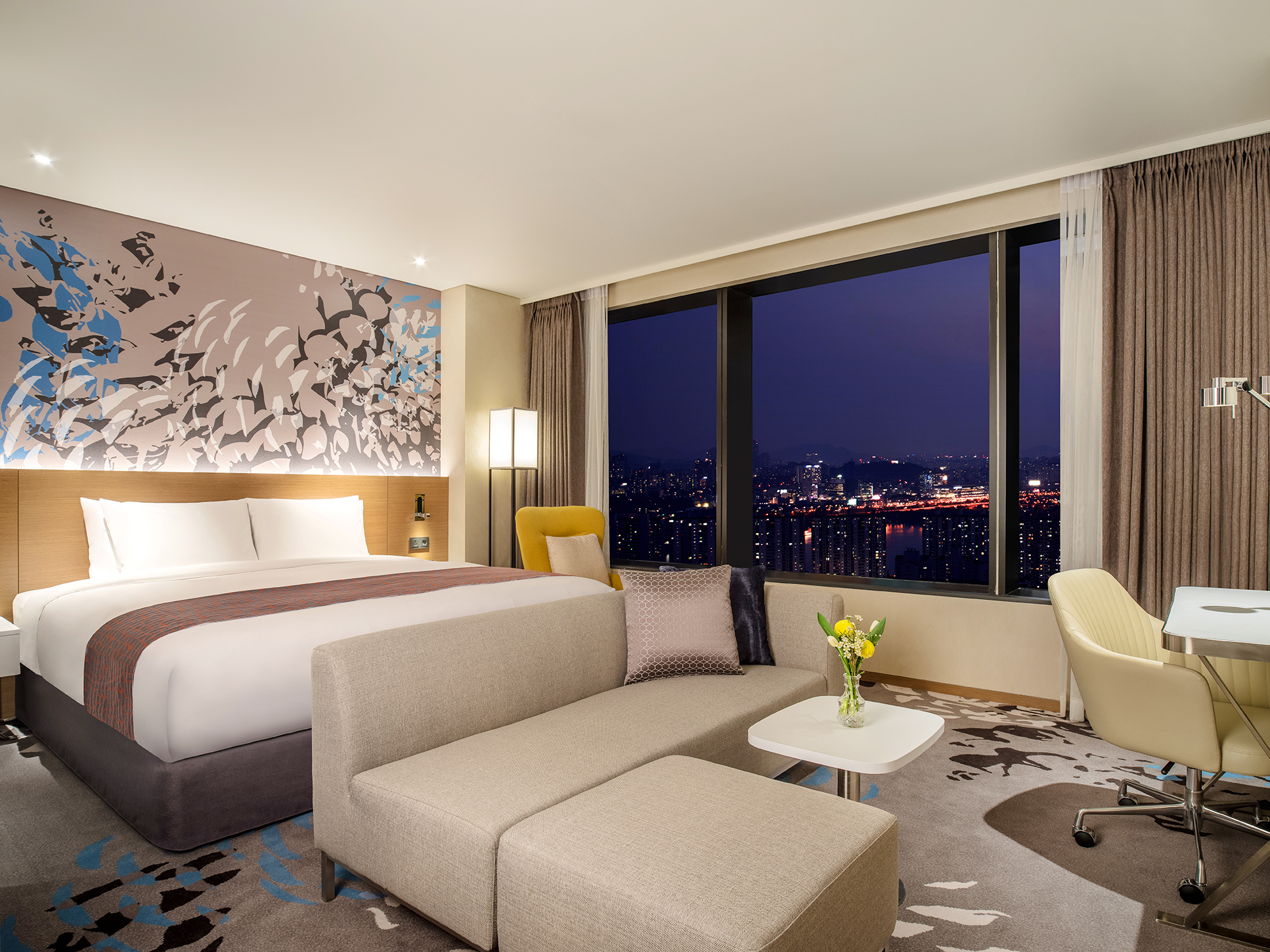 완벽한 라이프 스타일을 선보이는 노보텔 스위트 앰배서더 서울 용산에서 편안한 하루를 보내보세요. 확 트인 파노라마 한강뷰를 조망하며 여유로운 시간을 보낼 수 있는 40층 이그제큐티브 라