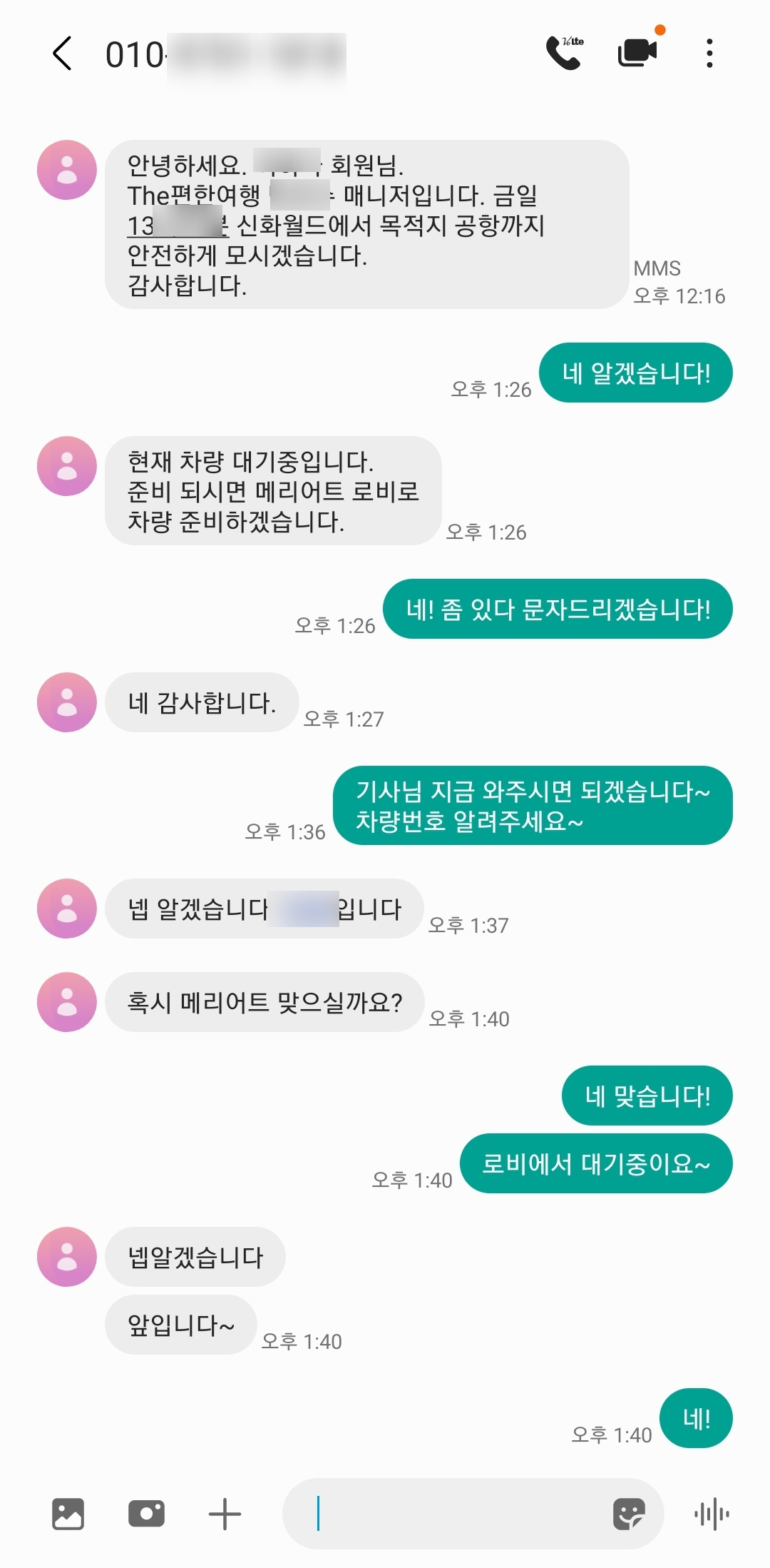 공항에 도착하기 하루 전에 담당 기사님 배정되었다는 안내 문자를 받았고 이후에는 기사님의 안내 문자를 받았다. 그리고 탑승하는 당일 날에도 기사님의 안내 문자를 받았다. 덕분에 기사님과 제대로 만날 수 있을까?라는 걱정 따위는 쉽게 날릴 수 있었다.