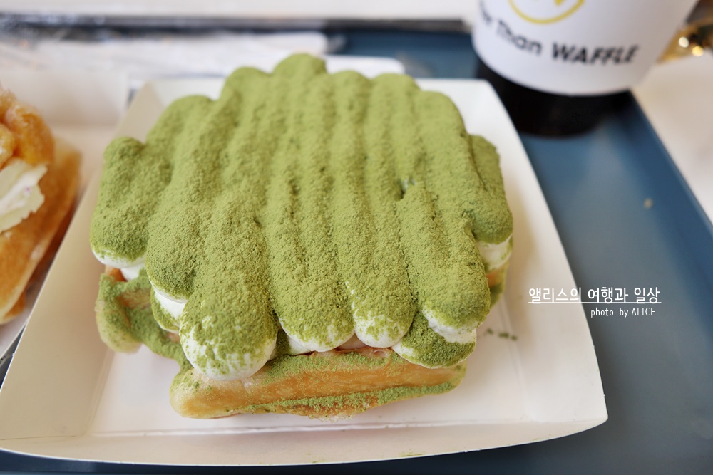 말차 티라미수 역시 인가 많은 와플이라고. 생크림과 마스카포네가 뒤석인 크림 위에 뿌려진 말차가루.