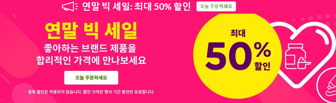 평소에도 다양한 할인이 쏟아지지만, 연말이라 그런가 아이허브에서 엄청난 할인이벤트를 진행하고 있어서 간단하게 아래에 정리했다. 본인에게 해당되는 할인코드나 이벤트가 있다면 필요했던 생활용품/화장품/영양제/기타등등 구매해보시길 추천!