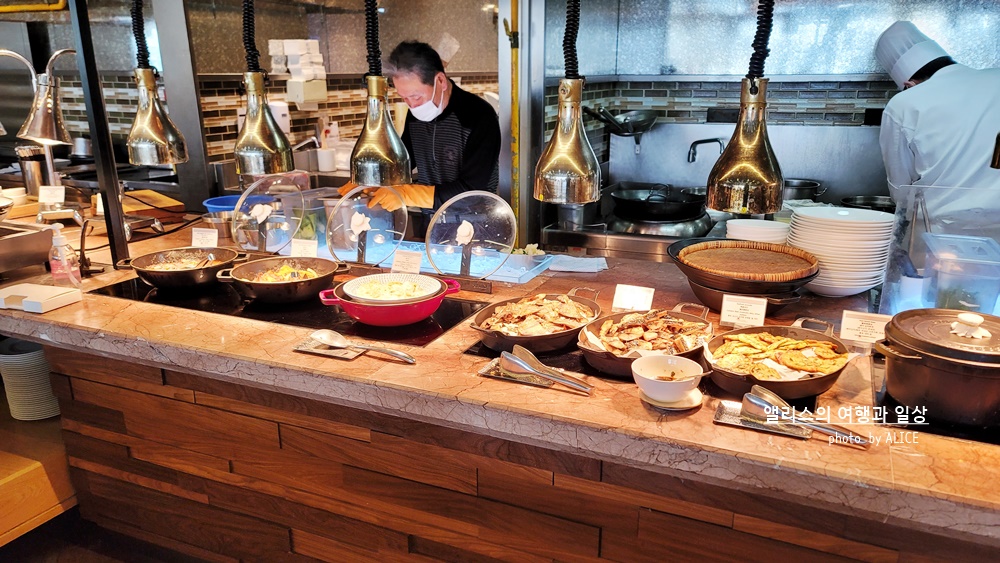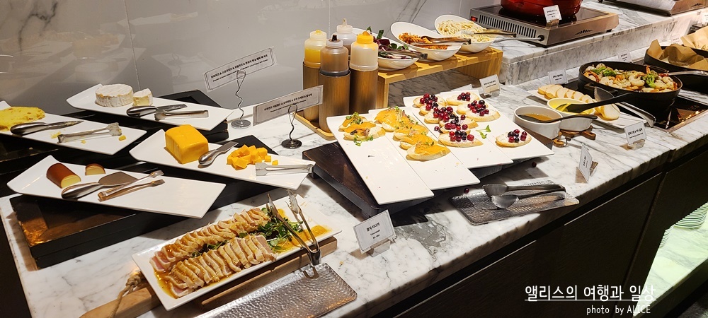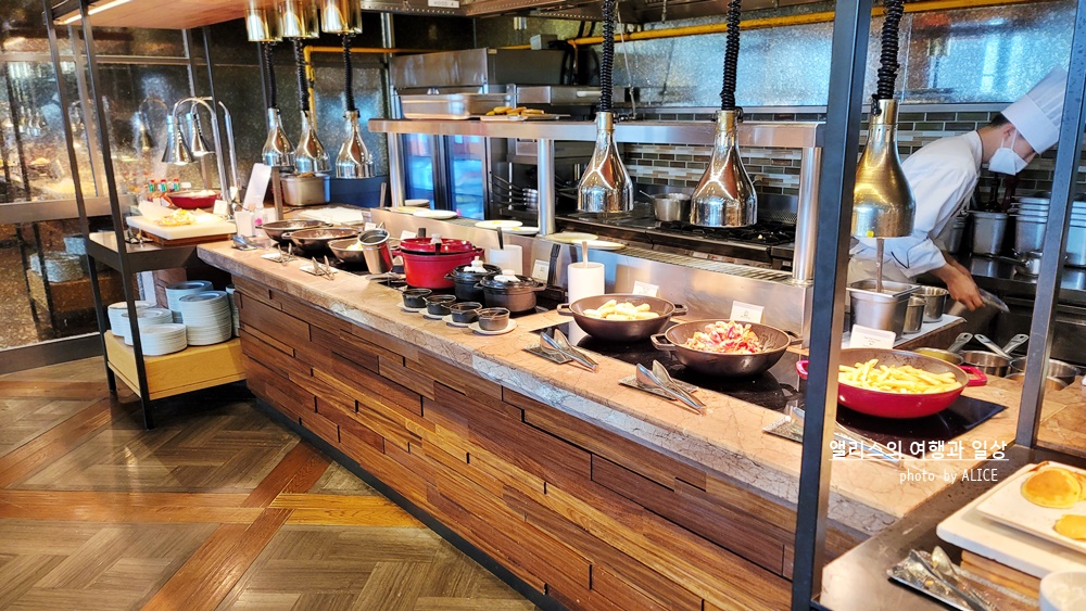 화려하다는 기준은 그냥 내 느낌이라는 점 잊지말자. 그냥 느낌상 (아침에 살짝 비몽사몽) 뭔가 화려한 느낌을 준 조식 중 하나는 신화월드 메리어트 관의 스카이 온 파이브 다이닝이었다. 가짓수야 뭐 메리어트 조식당 답게 많았는데 그만큼 사람도 많아서 좀 정신없었달까. 알다시피 국내 메리어트 티어가 많은관계로... 조식당 정말 바글바글 거린다는 단점이 있긴했다.
