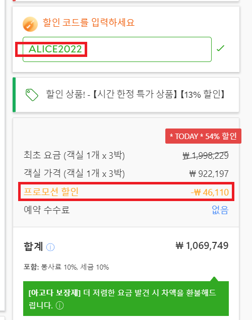 이 두가지가 가장 큰 장점이다. 아고다 제휴링크를 통해서 예약하면 국내 호텔은 물론 전세계 호텔 모두 해당되어 예약가능한데, <내가 체크인해야 할 정해진 기한이 없고, 적어도 얼마 이상 예약해야 하는 금액제한도 없다.> 그래서 제한없이 이용가능하다. 딱 하나, 조심해야 할 것은 예약기간이다. 2022년 3월 31일까지 예약할 경우 사용할 수 있는 코드이니 이 부분만 신경쓰면 된다.