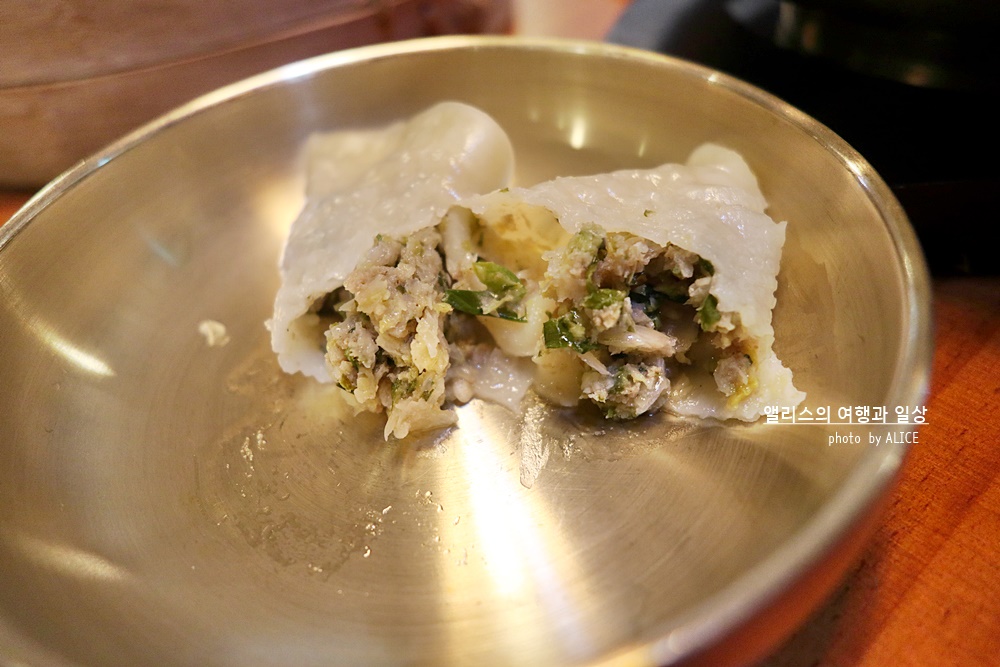 수제로 만든 만두여서 크기가 크고 양도 넉넉하다. 속에 들어간 내용은 한우와 채소가 들어가서 육즙이 그대로 느껴진다. 제공되자마자 뜨거운 수증기를 한 껏 내뿜기 때문에 입안에 뜨거운 김에 다치지 않도록 한 김 식혀야 하는데 그래서 먹는 데 조금 시간이 걸린다. 하지만 만두 좋아하는 이라면 즐겁게 먹을 수 있는 기본에 충실한 맛이라 만두 주문하길 잘했다는 생각이 들었다.