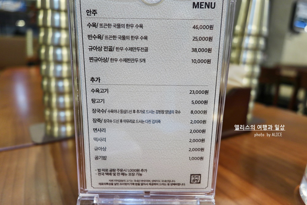 개인적으로 추천 메뉴는 이여곰탕 이름답게 주력 메뉴인 곰탕이다. 물론 수육 고기나 전골도 인기가 많은 메뉴라 2인 이상 이곳에 방문한다면 주문해도 좋을 메뉴들이다. 나는 혼밥이었으니 간단하게 특곰탕과 찐규아상(한우 수제 찐만두 5P)을 주문했다.