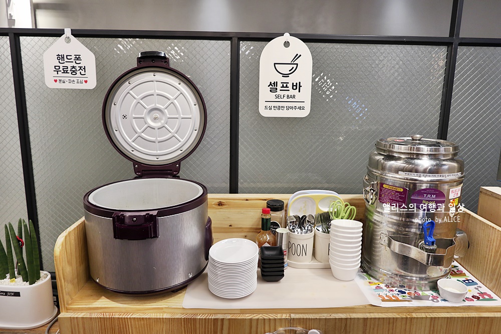 셀프바 따로 있어서 밥이나 국 그리고 기타 가재도구 필요시 얼마든지 이용 가능하다.