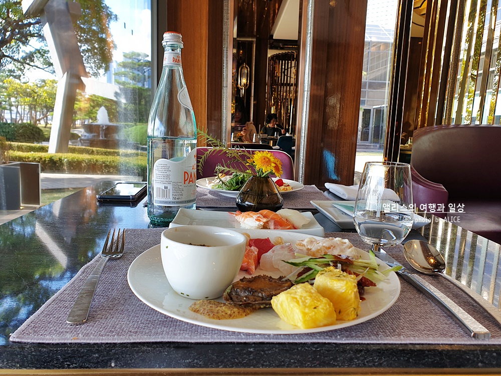 그리고 아침식사 역시 온더플레이트 레스토랑에서 하기 때문에 창가에 자리 잡으면 푸른바다가 정원 너머로 보이기 때문에 뷰도 정말 좋다!