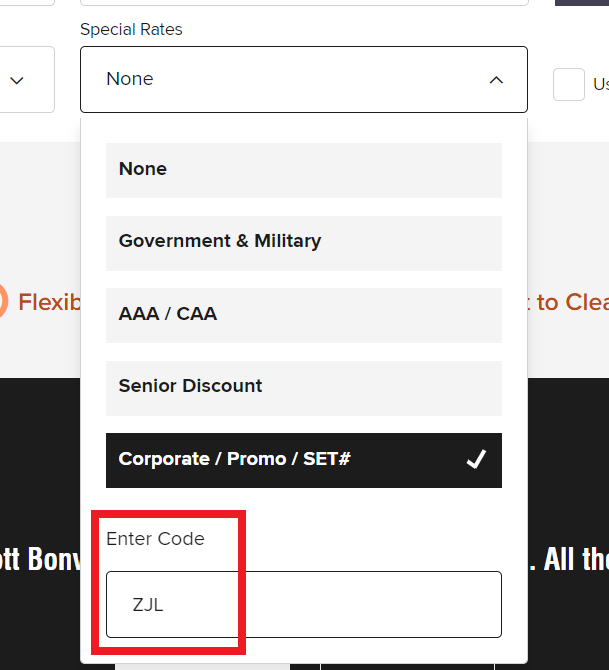 - 예약방법: 메리어트 본보이 스위트 이벤트 페이지 클릭 후 검색시 특별요금 프로모션 칸에 ZJL 입력 후 2박 이상 검색 시 할인 가격 확인 가능 (아래 캡쳐화면 확인하기)