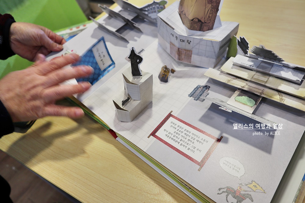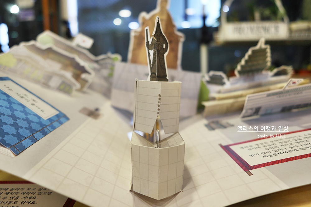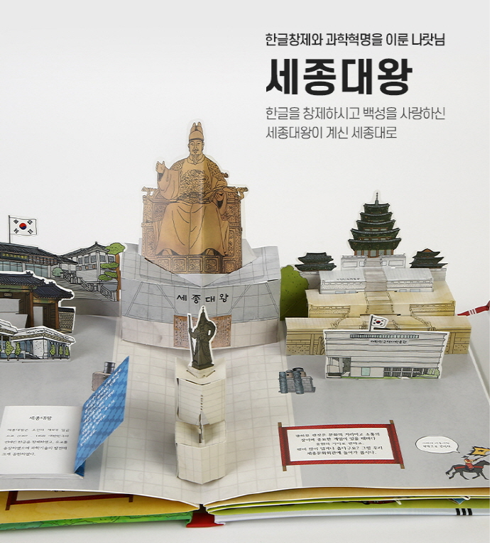 · 세종대왕상과 이순신 동상이 함께 있는 서울의 대표 관광지 광화문 거리를 재현한 팝업북