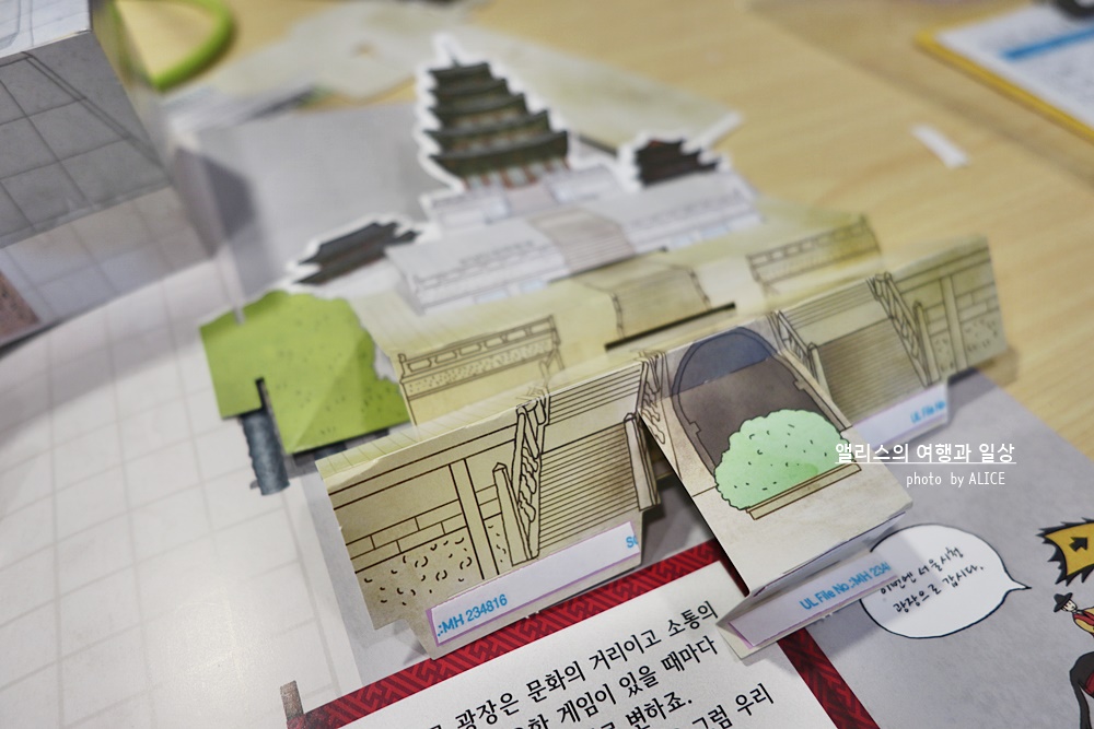 내가 만들기로 한 광화문 거리. 광화문 거리의 상징적인 조형물과 건물 그리고 그에 담긴 의미 등을 팝업북으로 제작되어서 직접 만들어볼 수 있다. 이렇게 자체 제작된 것이라 그 어디에도 볼 수 없는 자료라 아이들 교육용 자료로도 좋고 해외 친구들이나 여행객들에게 좋은 관광지도가 되어줄 것 같다.