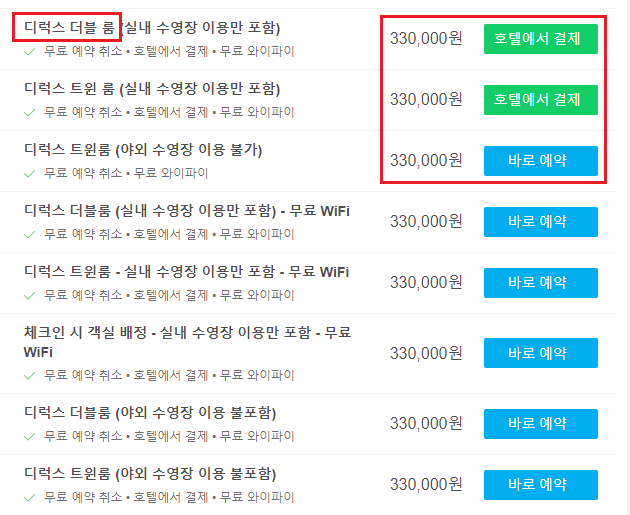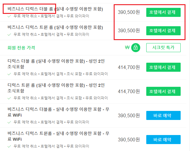 그러므로 비즈니스 디럭스 룸을 기준으로 비교해보자면