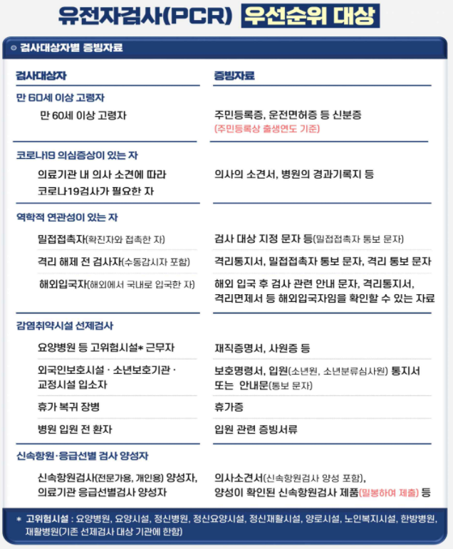 2. PCR 우선순위(=PCR 검사 무료) 대상에 해당되는 경우