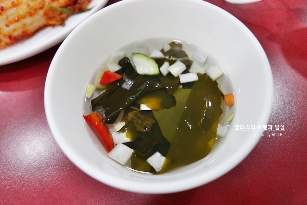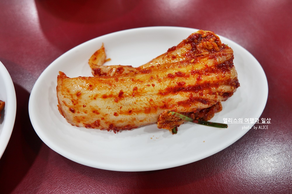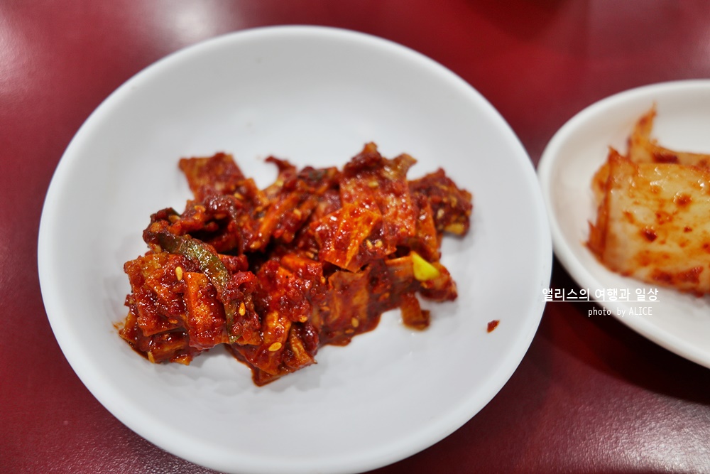 매번 갈 때마다 반찬이 같다고 생각된다. 나 안 갈 때만 반찬이 바뀌는 건가? ^^;; 암튼 갈 때마다 내 기억은 반찬이 늘 같은 한결같은! 처음 이 식당에 갔을 때, 사실 반찬에 대한 큰 기대가 없었는데, 반찬 먹어보고 맛이 생각보다 좋아서 의외다?! 싶었다. 워낙 저렴했던 탓에 반찬이 맛없을 거라 생각했는데 김치마저 맛있는 거 아닌가. 김치 양념이 좀 특이한데 그래서 그런가 김치가 인기가 많아서 김치만 따로 판매하기도 한다.