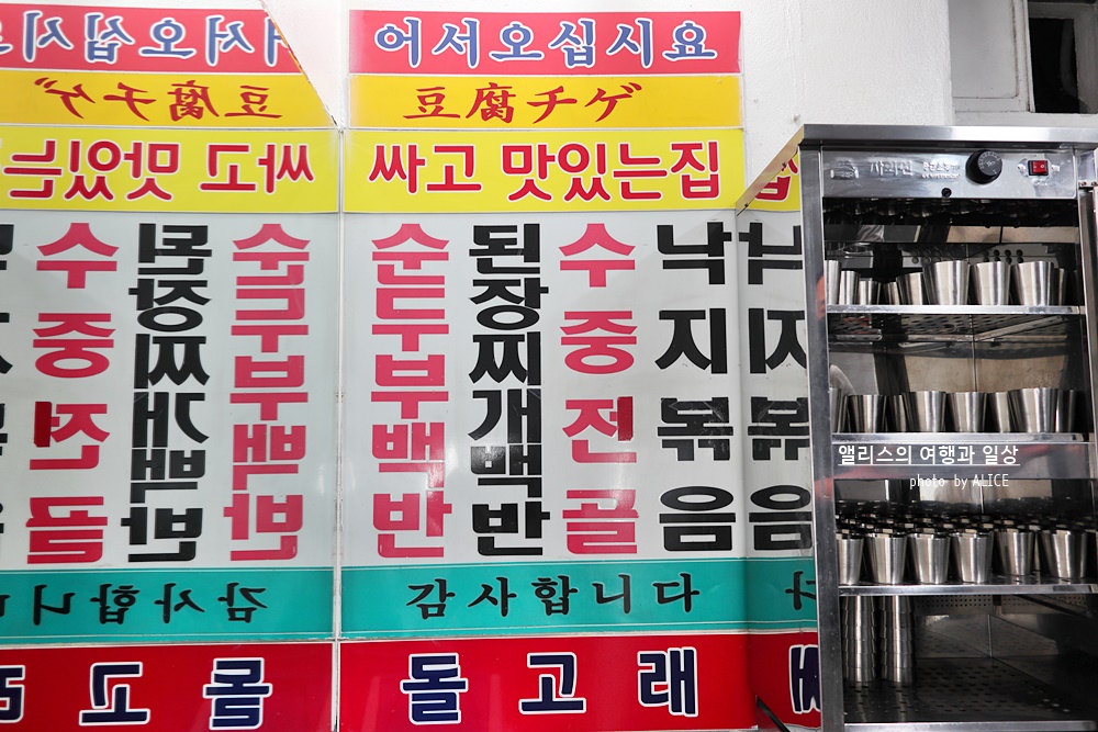 개인적으로 추천하는 메뉴를 고르라면, 순두부 식당이니 순두부를 먹는 것이 좋긴 하다. <성인 2인이라면 1인당 순두부백반 하나씩 주문하고 추가로 낙지볶음 1인분을 주문>하면 진짜 만족스럽게 먹을 수 있다.