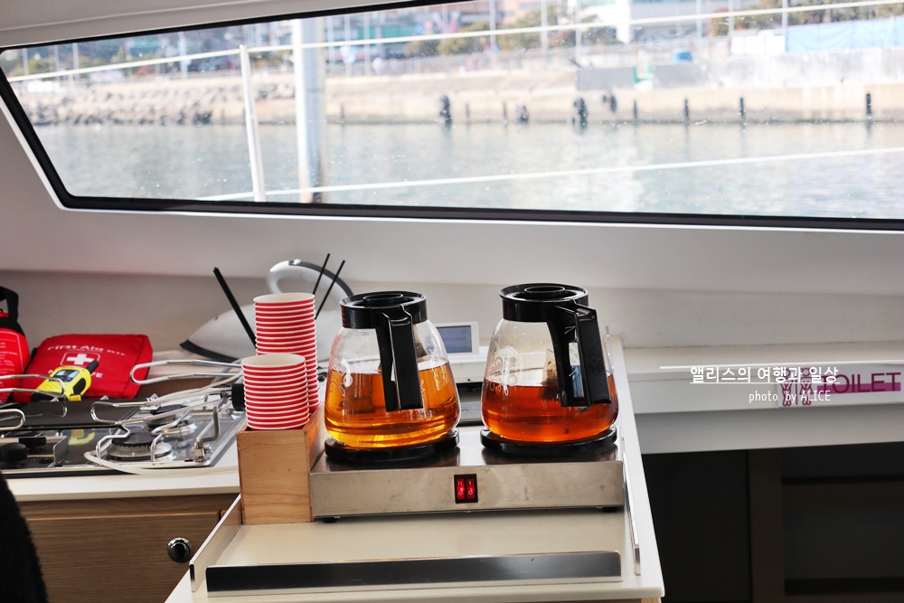 ① 요트 내에서: 현재 물과 음료수를 무료로 제공. 폴라로 리드(주간만) 제공, 폭죽(야간만) 제공, 선상낚시(프라이빗 투어 해당) *코로나19가 아니라면 다과+맥주 서비스 제공