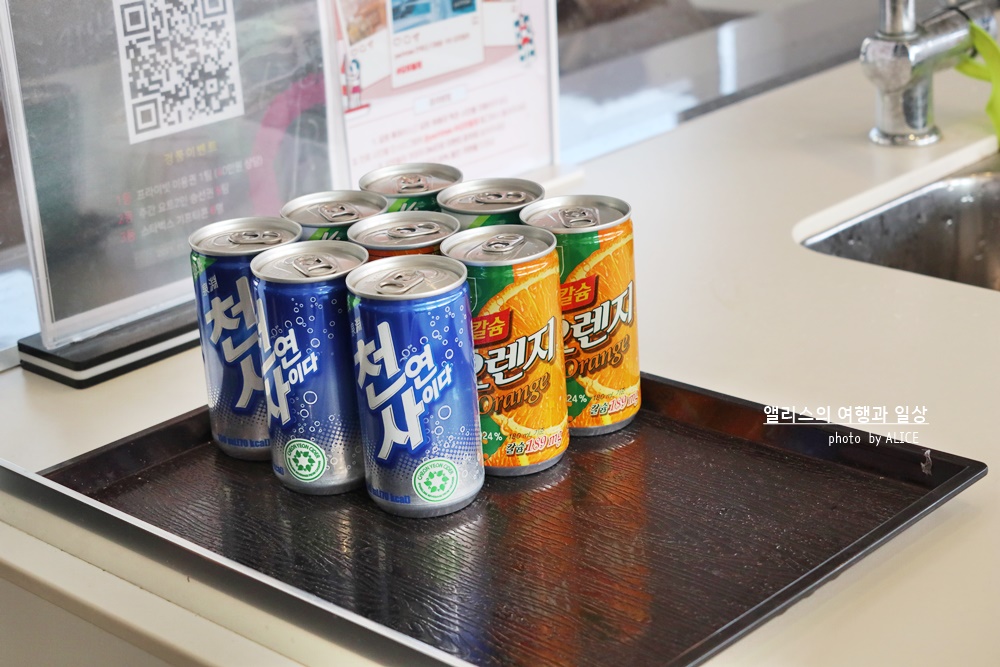 코로나 19 이전에는 맥주+다과 서비스까지 무료로 제공되었으나 이후에는 음료 정도를 제공하고 있다. 참고하자. 아이들도 누구나 마실 수 있는 기본 캔 음료가 있고 원하는 만큼 마실 수 있다. 물론 그렇다고 한 사람이 여러 개 가져갈 필요는 없다.