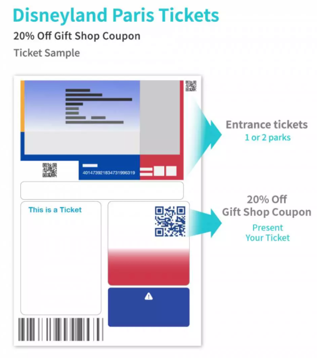 입장권마다 차이는 있지만 약 30% 이상 할인된 가격으로 디즈니랜드 파리 입장권 구매가 가능하다. 여기에 추가로 디즈니랜드 기프트샵에서 이용가능한 20% 할인 바우처까지 무료 증정된다! 사실 디즈니 랜드까지 가서 정품 디즈니 기프트를 자연스레 사오게 되는 가격이 뭐 그리 저렴한 것은 아니니 이 20% 할인쿠폰을 활용하면 꽤 저렴하게 정품을 구매할 수 있다.