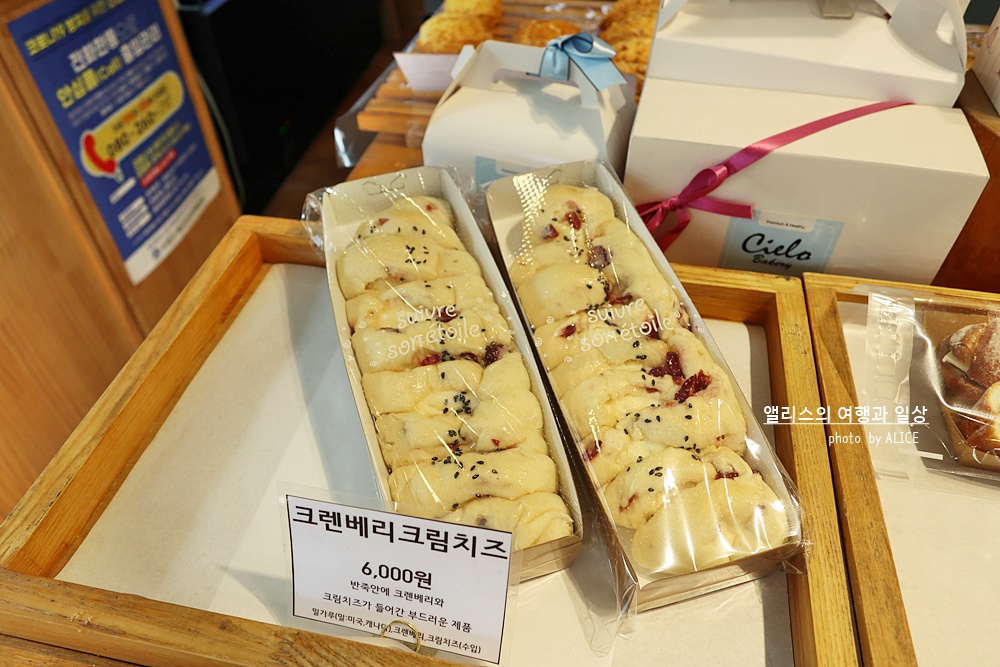 스콘 역시 차 한잔 마시며 먹으면 딱 좋은, 취향에 맞는 다양한 스콘도 마음에 들고 크림치즈 들어간 빵들도 하나같이 부드럽고 맛이 좋았다. 역시 시엘로 과자점이 왜 인기있는지 알 수 있었던 즐거운 빵 쇼핑이었다.