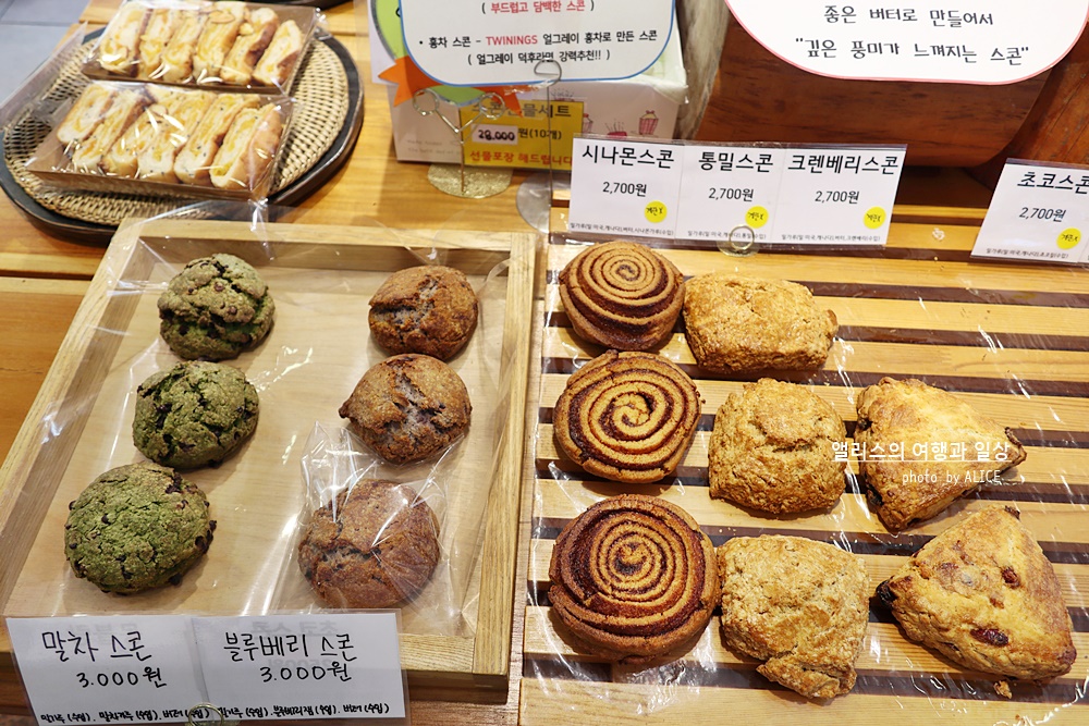 스콘의 종류가 정말 다양하기 때문에 본인이 좋아하는 종류의 스콘을 선택할 수 있다. 이 역시 저녁이 되면 선택할 수 있는 종류가 점점 사라지니 낮에 사람들이 많이 없는 시간대에 방문해서 신나게 고르시길 추천.