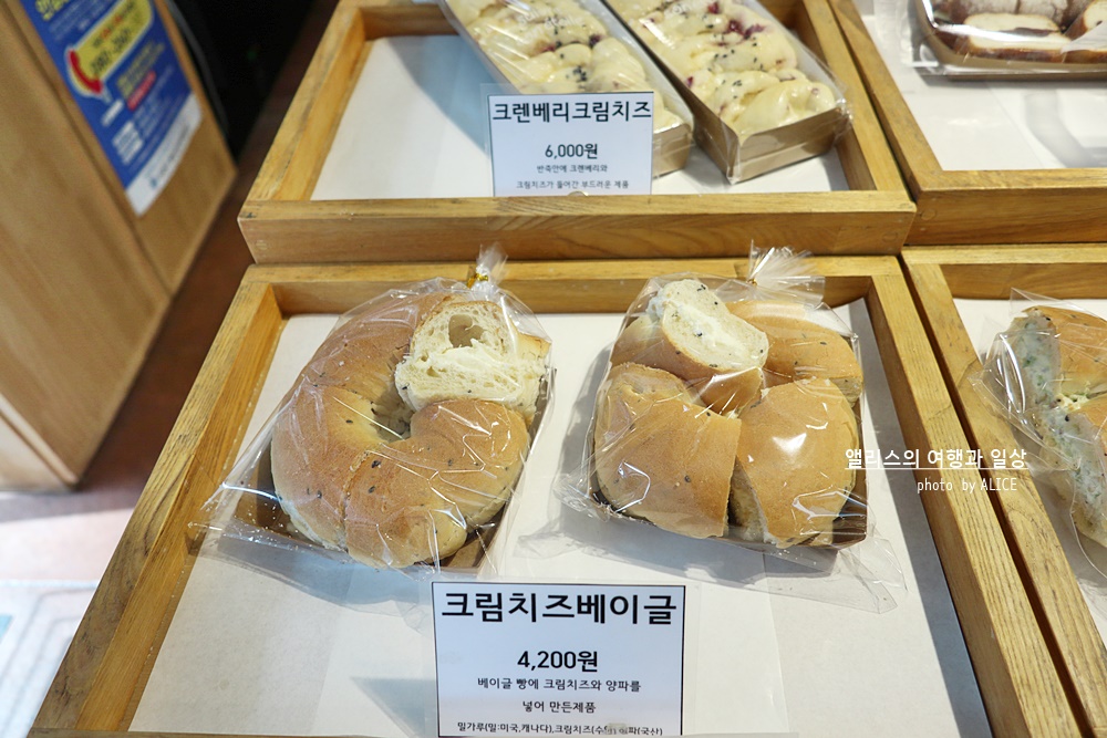 크림치즈를 활용한 빵부터 땡초가 들어간 크림치즈 베이글도 있다. 취향에 따라 다르겠지만 자색고구마 빵도 추천한다. 그리고 치즈를 좋아한다면 치즈가 들어간 종류 중 하나를 선택하는 것도 추천.