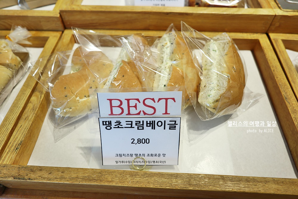 크림치즈를 활용한 빵부터 땡초가 들어간 크림치즈 베이글도 있다. 취향에 따라 다르겠지만 자색고구마 빵도 추천한다. 그리고 치즈를 좋아한다면 치즈가 들어간 종류 중 하나를 선택하는 것도 추천.