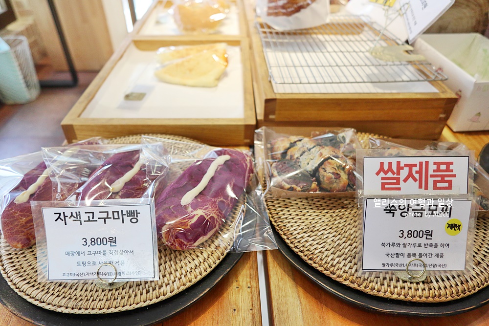 새우바게트, 엘리게이트, 단팥빵(홍국쌀로 만들었음), 홍국쌀식빵, 스콘