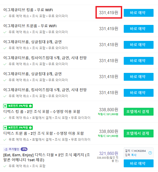 · 현재 호텔 가격비교 결과 기준 최저가 331,419원