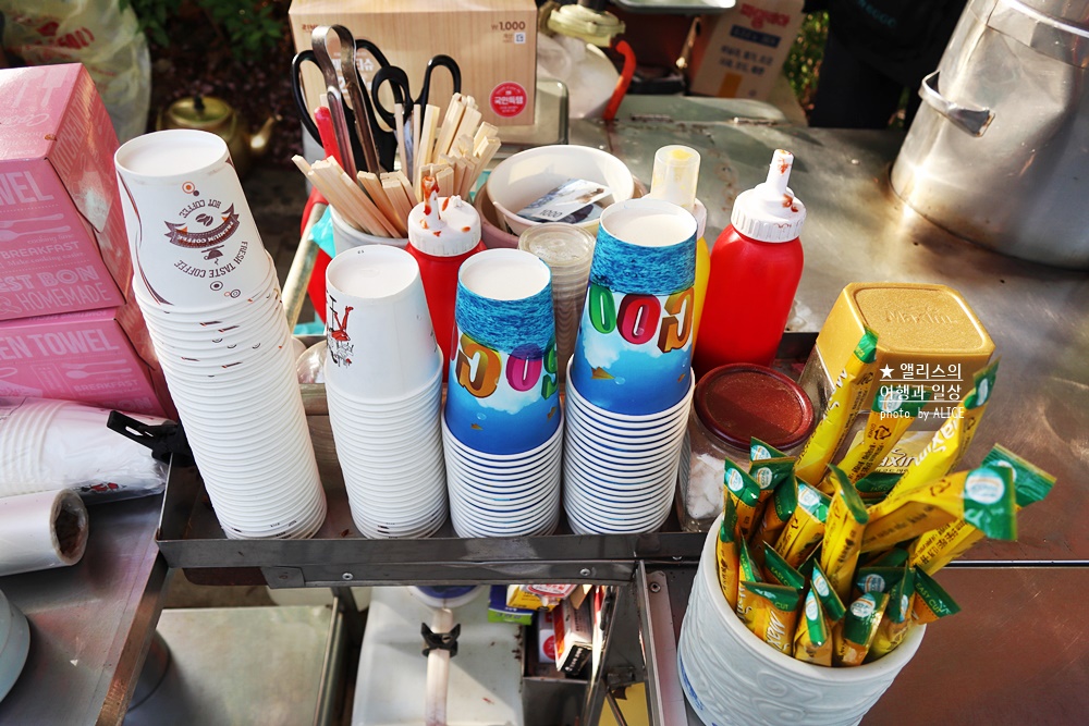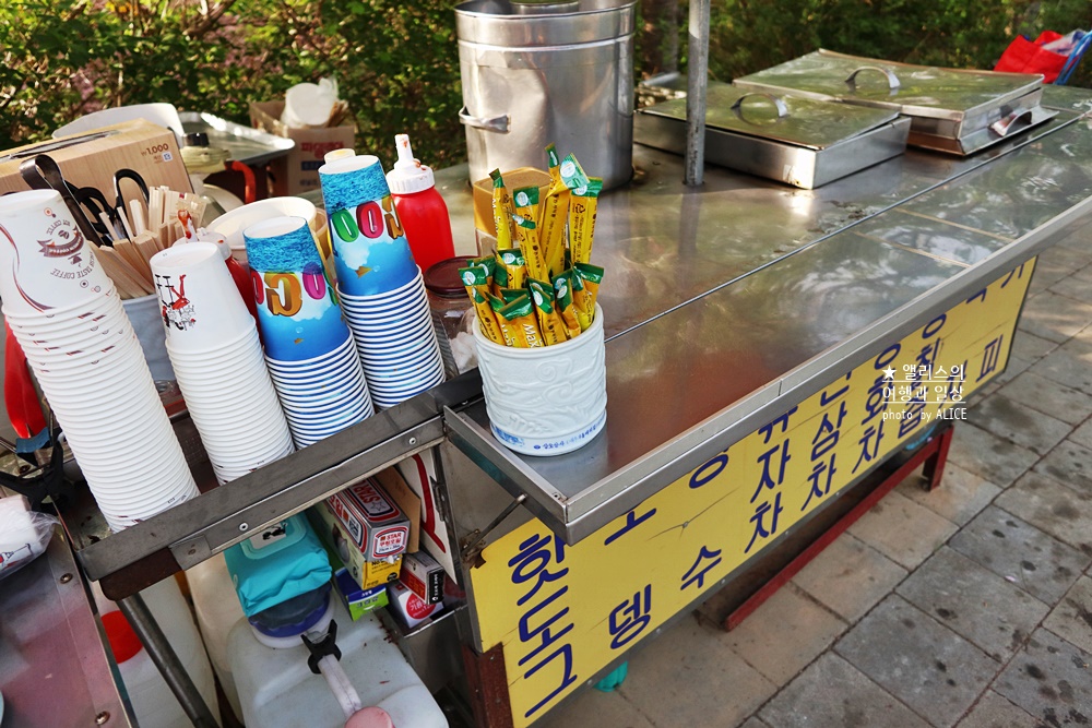 마침 장사하시는 분들도 점점 오픈 준비를 하고 계셨다. 한 이모님께 다가가 믹스커피를 부탁드렸다. 이른 아침에 도착했더니 쌀쌀했는데 그 쌀쌀한 공기를 누비며 꽃이 예뻐 사진에 담아보겠다고 돌아다녔더니 따뜻한 것을 마시고 싶었다. 빈속이지만 요즘 들어 계속 당기는 커피를 외면(?)할 수 없었다. 1천 원을 내고 따뜻하게 받아 든 믹스커피. 추가로 설탕 한 스푼을 더하고 난 뒤 홀짝이며 불국사로 올라갔다.