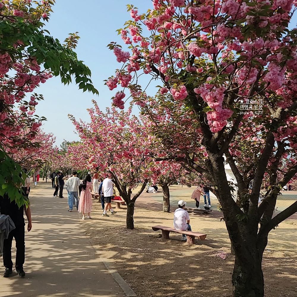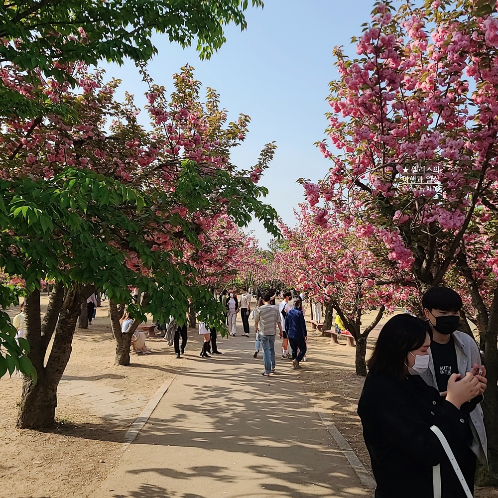 이 벚꽃길이 매력적인 이유는 길 위에는 흐드러진 겹벛꽃이 하늘을 매우고 길 아래 꽃잎이 가득했기 때문이다. 이러니 인기가 많을 수밖에!! 그럼 이곳에서 찍은 사진은 어떤 모습일까?!