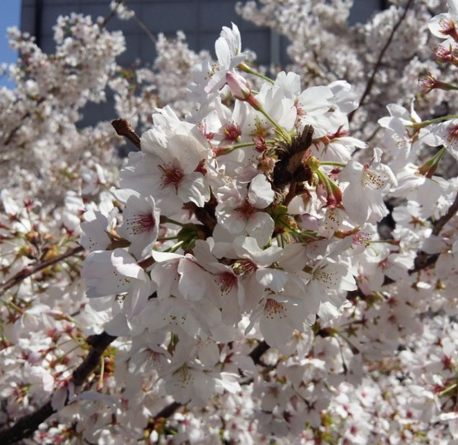 "아, 여기는 아직 벚꽃을 볼 수 있다고 해서요. 제가 있는 지역은 이미 다 떨어졌거든요. 저도 이거 보려고 새벽기차 타고 왔어요."