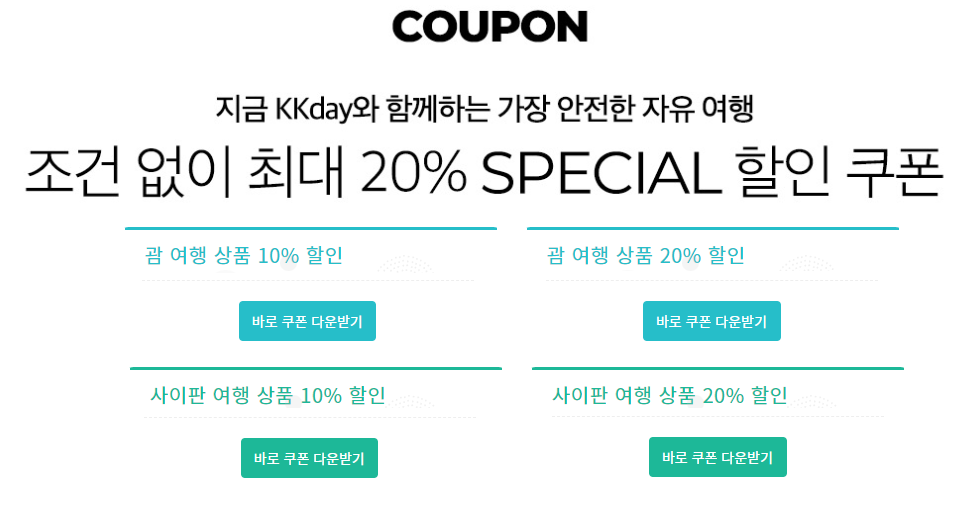 · 할인코드 다운로드 방법: 괌 & 사이판 이벤트 페이지(여기) 클릭 후 바로 다운로드 가능