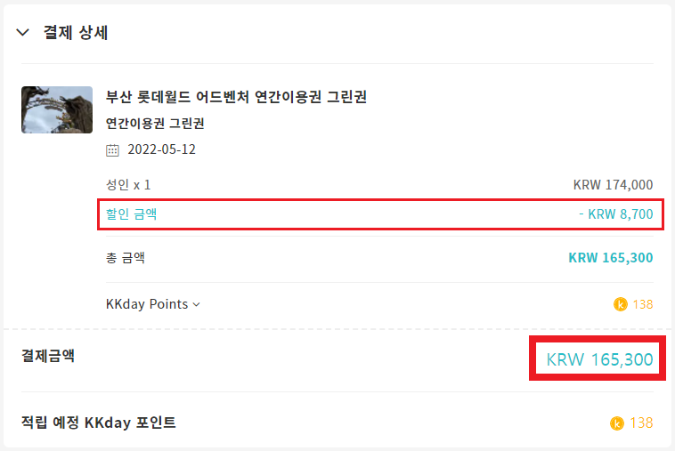 위 가격 보면 딱 알 수 있듯이, 할인코드와 예약사이트만 잘 활용해도 부산롯데월드 어드밴처 그린권을 성인기준 165,300원에 구매 가능하다. 이는 연간회원권 구매방식 중 가장 최저가로 구매할 수 있는 유일한 방법이다! 부산 롯데월드 어드밴처 연간회원권(그린권)이 필요했다면 요 할인코드를 꼭 활용하자!