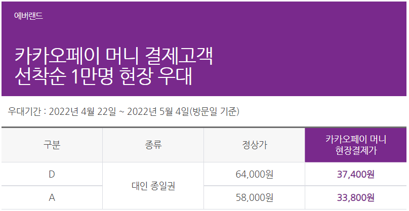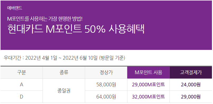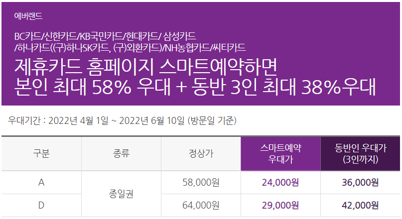 2. 에버랜드 자유이용권(종일권) 할인 종류