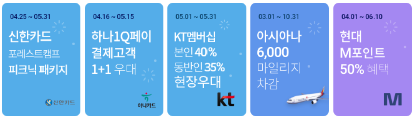카드사 외에도 에버랜드에서 자체적으로 할인 이벤트를 진행한다. 그 종류가 다양해서 하나하나 찾아봐야 하는데 아래 정리한 할인정보를 참고하자. 시기마다 할인정보는 변경될 수 있고 사전 공지 없이 마감될 수 있음을 잊지 말자.
