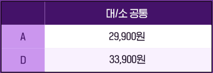 A~D까지 종류가 나뉘는데 이는 입장 시기에 따라서 가격을 구분했다.