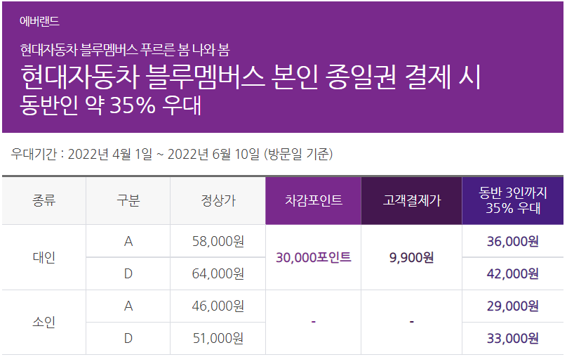 2. 에버랜드 자유이용권(종일권) 할인종류